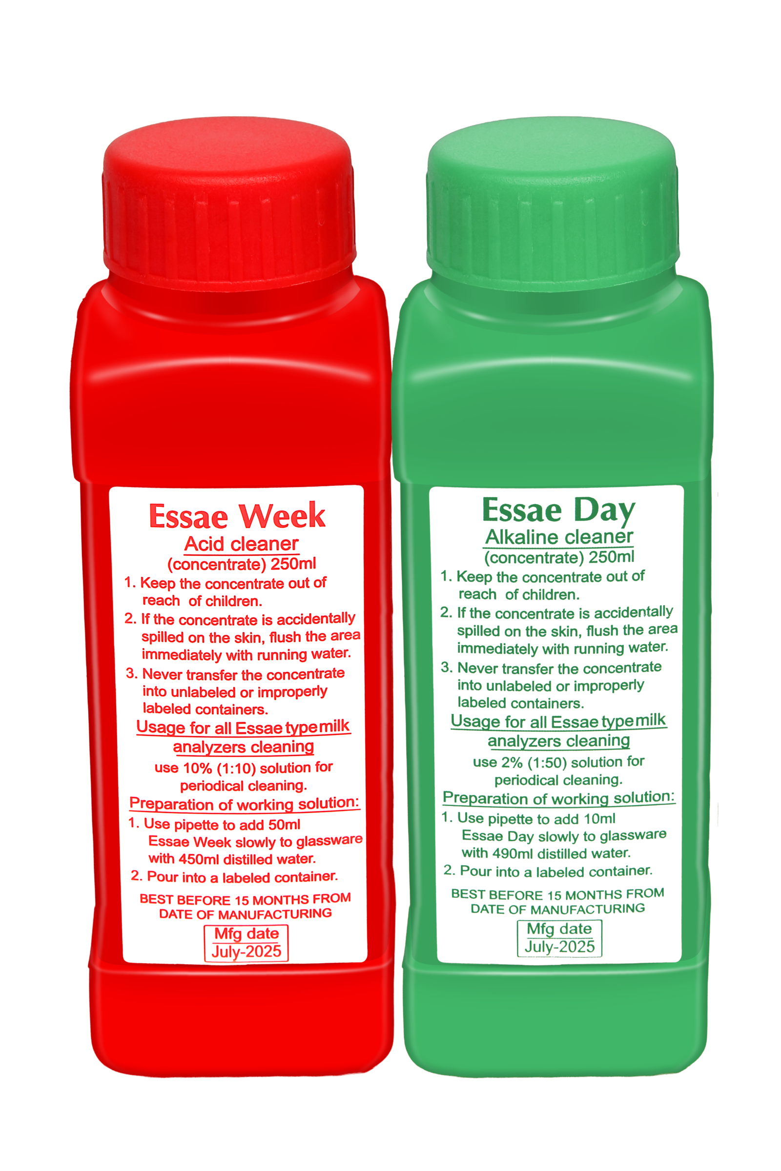 Essae Daily (Green) Cleaning Solution Essae Weekly (Red) Cleaning Solution